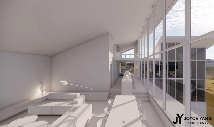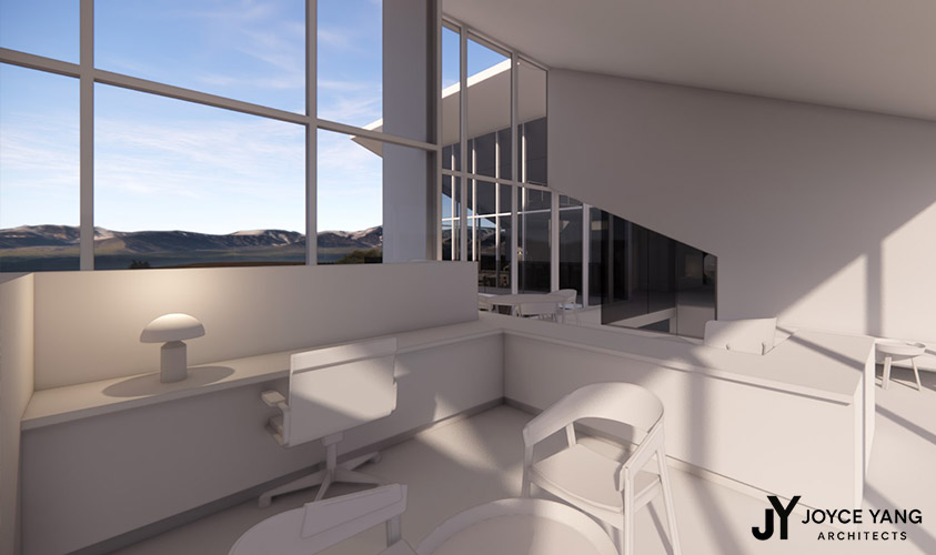 整體配置回應基地視線條件與氣候特性,透過量體分節、挑空層次與開口控制,建立清晰的空間秩序,並提升自然採光與景觀滲透的效率。